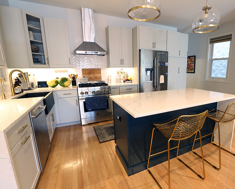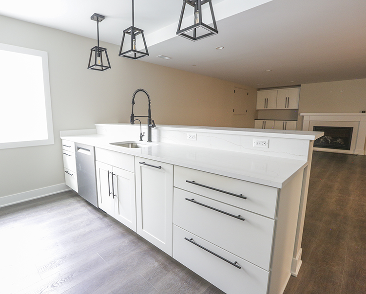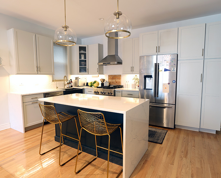 Custom Kitchen Island - Cambria Quartz with Waterfall Edge