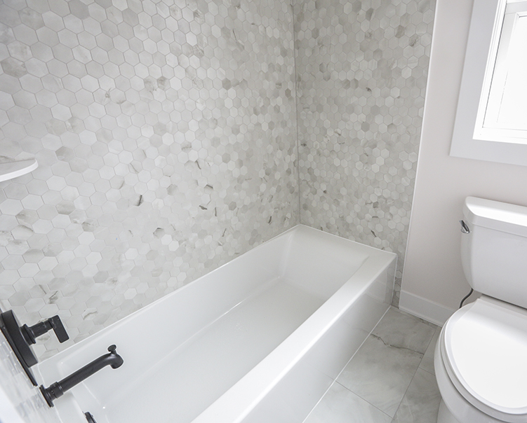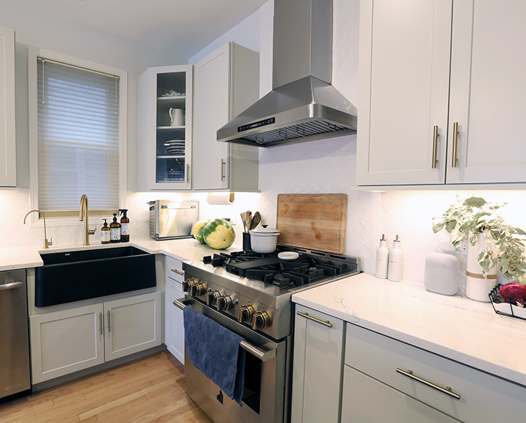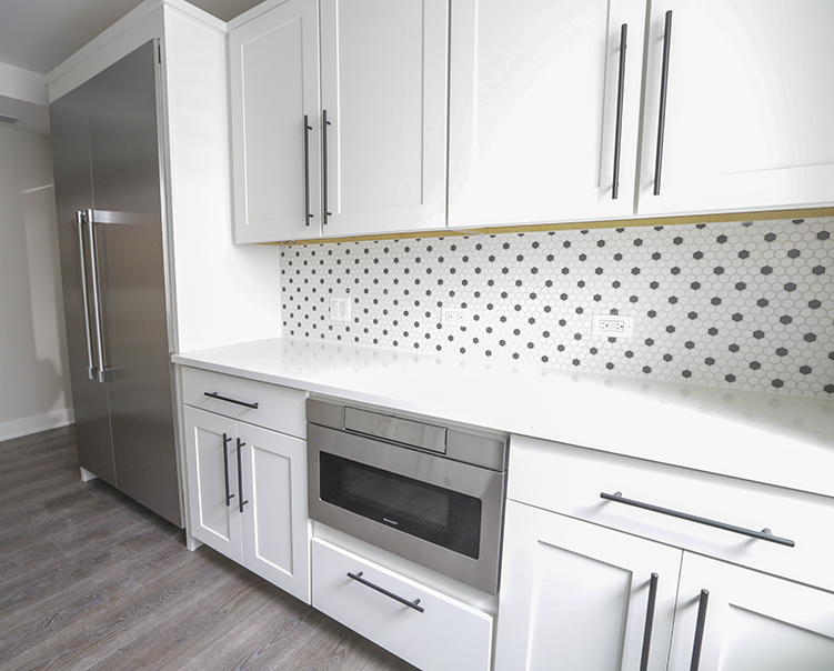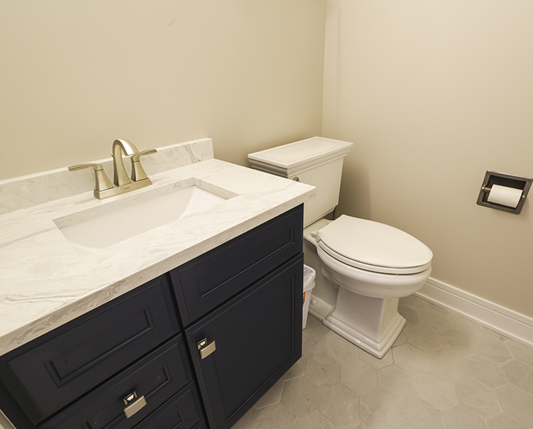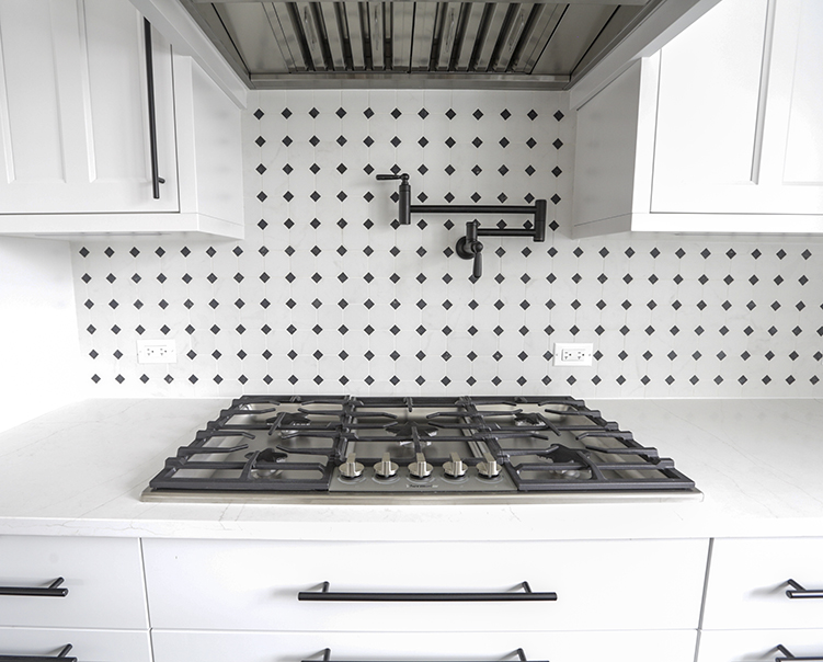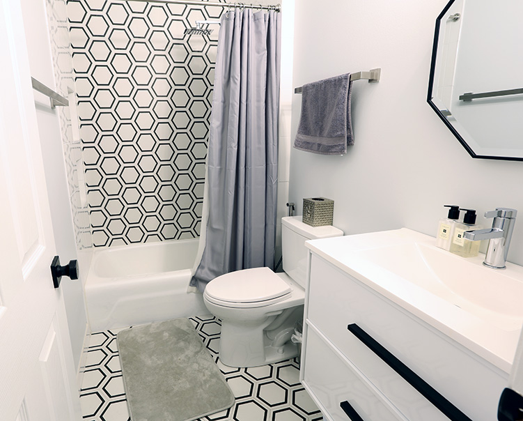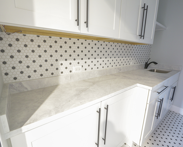 Porcelain Hexagon Tiles + Quartz Countertop and Cabinets