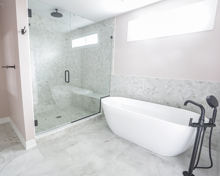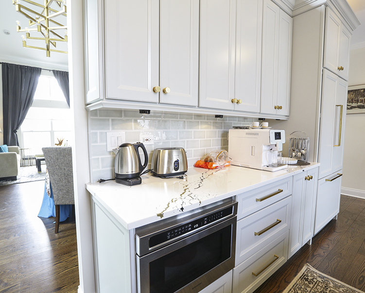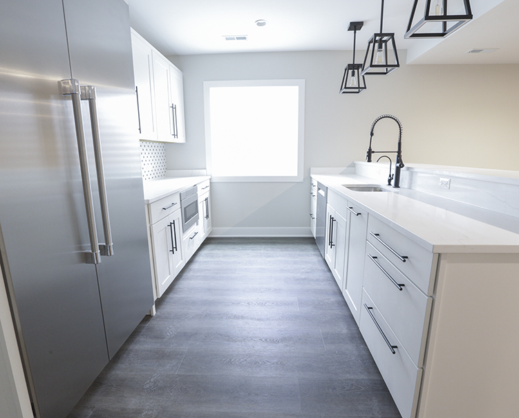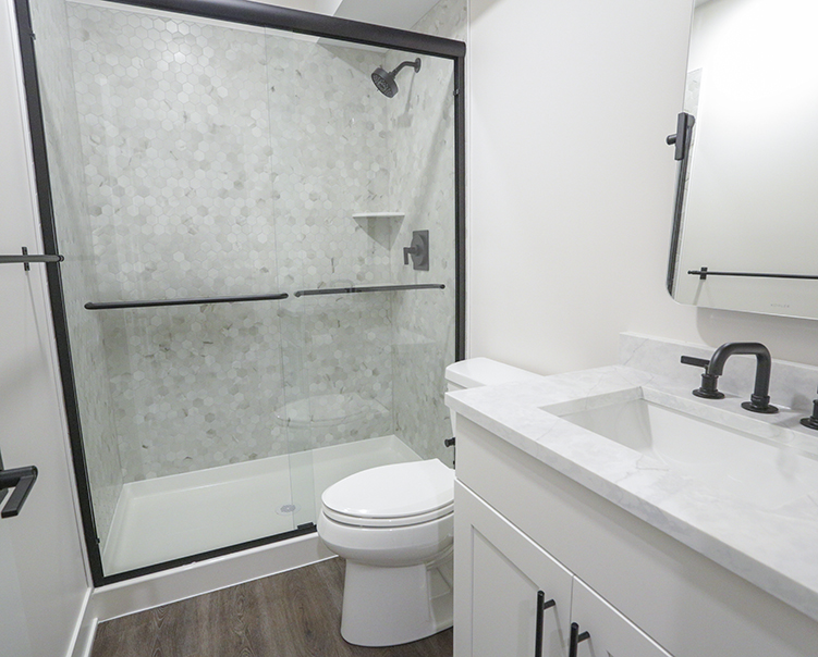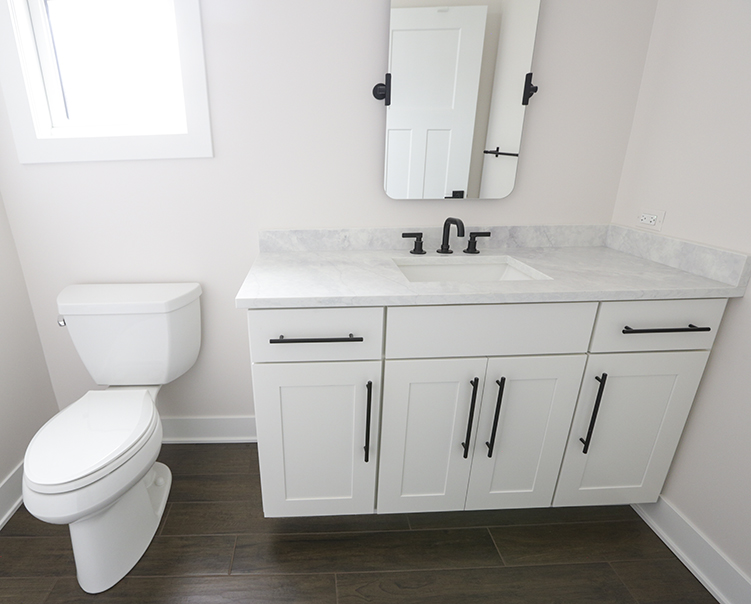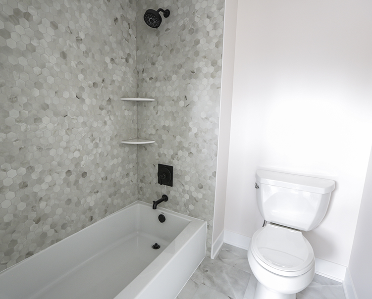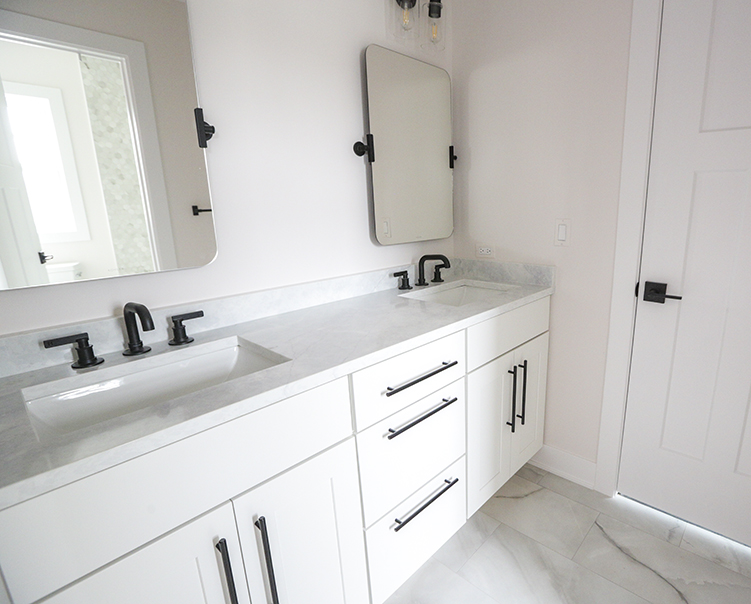 Porcelain Hexagon Tiles + Quartz Countertop and Cabinets
