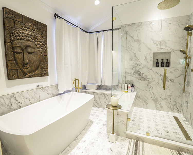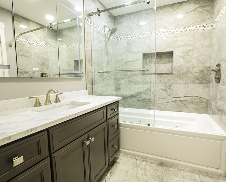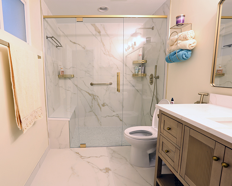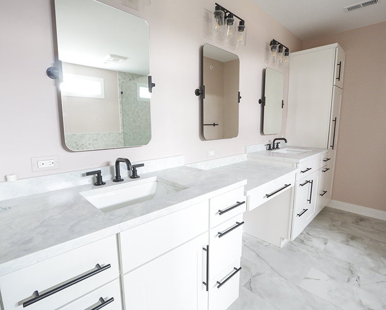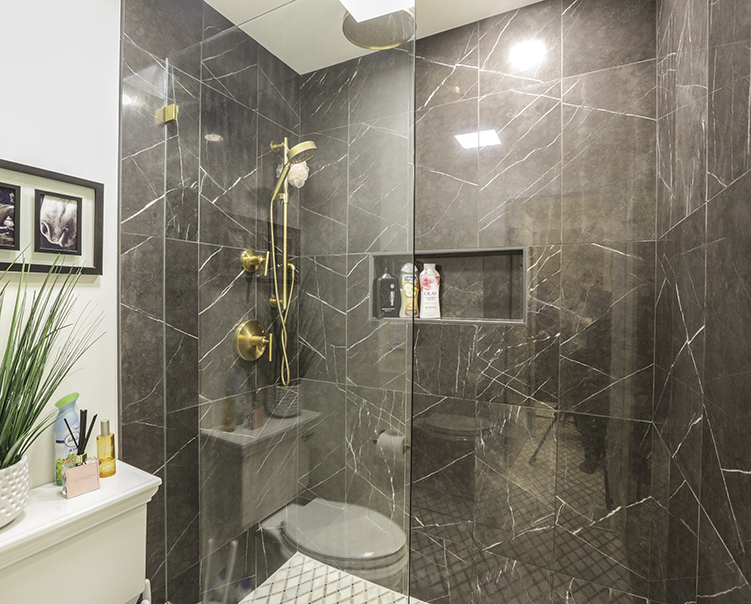 Custom Cabinet & 24"x24" Large Format Wall + Floor Tiles